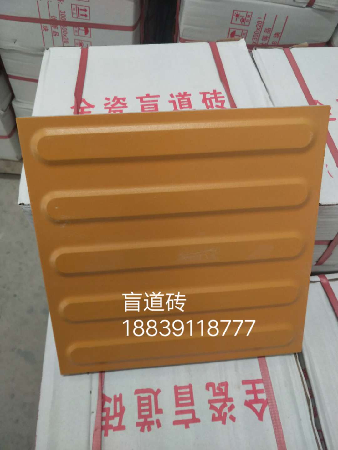 二、陶瓷止步盲道磚,300*300*25(帶防滑點(diǎn)),【全瓷盲道磚特點(diǎn)】:.色彩鮮亮:高溫?zé)Y(jié)、自然成色、故其色彩更顯純凈天然、高雅華貴。.美觀大方:簡(jiǎn)潔大方、觸覺(jué)明顯、磚體表面如玉、不褪色。.抗風(fēng)化:工藝配方獨(dú)特,內(nèi)外品質(zhì)一致,久經(jīng)風(fēng)吹雨曬,雨雪露凍,而光彩依然。.抗折抗壓:產(chǎn)品厚度達(dá)到20mm-25mm??拐蹚?qiáng)度、抗壓強(qiáng)度均大于花崗巖。.耐磨性:高壓成型、吸水率小、體質(zhì)密度大、耐磨耐用。